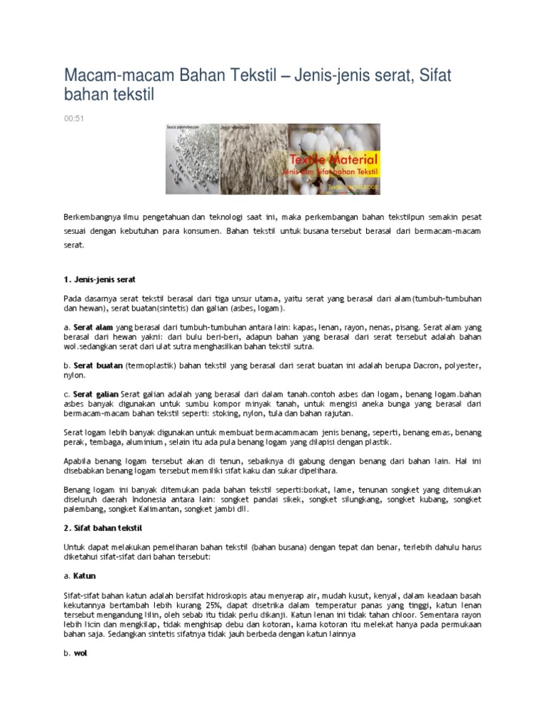 Jenis Dan Sifat Bahan Tekstil Pdf